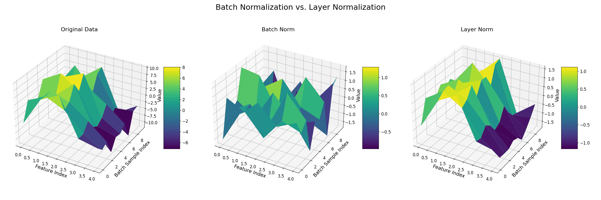 The figure below demonstrates the difference between batch normalization and layer normalization.