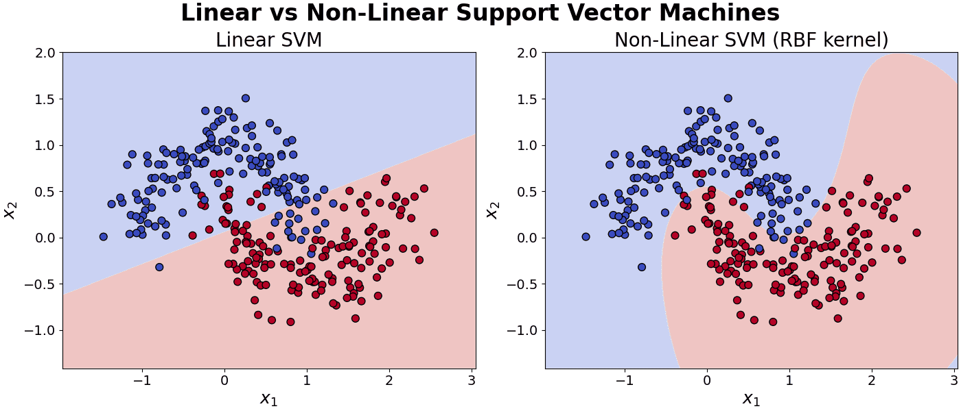 The example below compares a Linear Support Vector Machine with a Non-Linear Support Vector Machine.